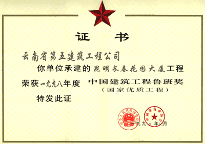 昆明市第一人民醫院外科住院大樓—2005年度“AAA級安全文明標準化誠信工地”